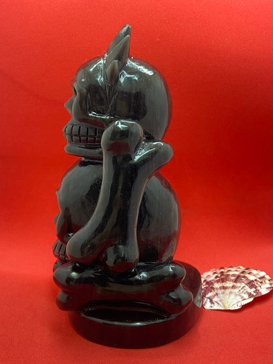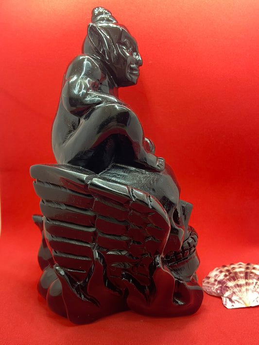 1.14kg Gold Obsidian Devil sitting on the Skull