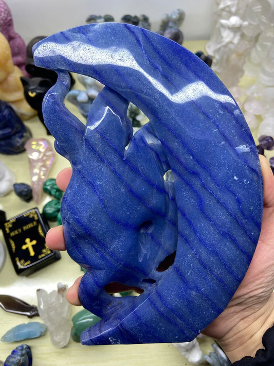 0.71kg Blue Aventurine Nine-tailed Fox on the Moon