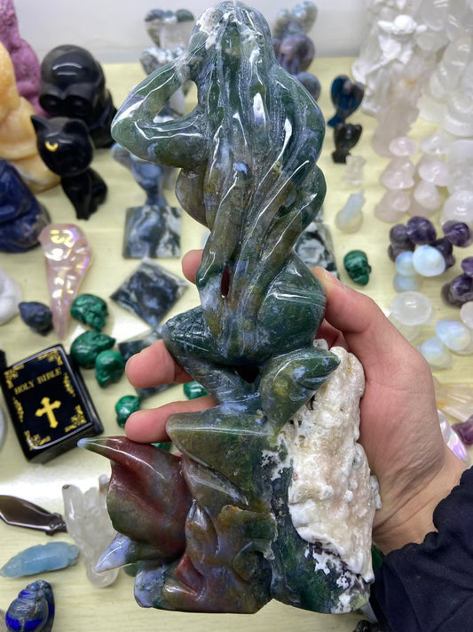1.11kg Moss Agate Mermaid